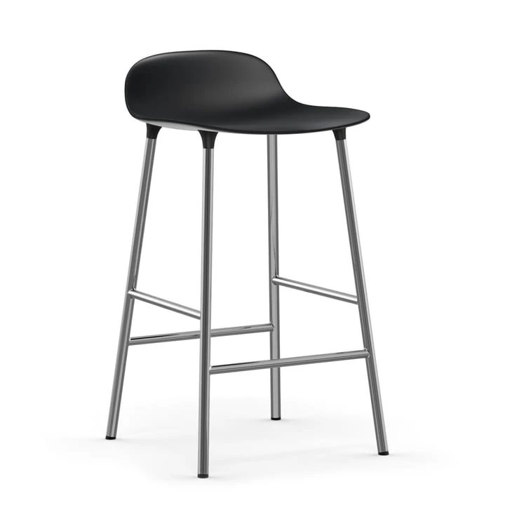 The Form bar stool (65 cm) is part of the Form series by Simon Legald for Normann Copenhagen and convinces with a particularly noble frame in chrome, which is modern and timeless at the same time in both private and public areas.