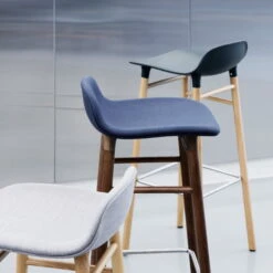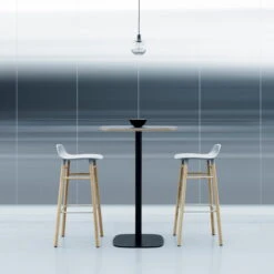 The Normann Copenhagen Form Bar Stool is also available in other colours, in a taller version (75 cm), as well as with bases made of steel, walnut or oak on request.