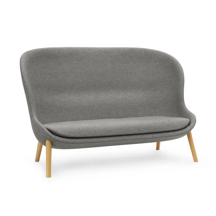 The sofa consists of a narrow base with four oak legs. The construction carries a voluminous shell that is padded with PU foam for extra comfort. The cover is available in different materials and colours. With a length of almost 170 cm, the sofa adapts perfectly to every ambience and every taste.