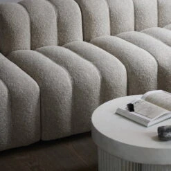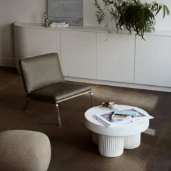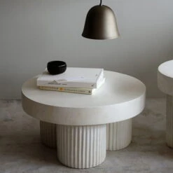 The Gear Side Table by Norr11 is inspired by Brutalist architecture from the mid 20. century. The sculptural coffee table is designed as a block-like structure that reflects architectural building elements made of concrete. Gear Features a round tabletop that rests on three cylindrical legs. The legs are characterized by a fluted detail that gives the architectural design a refined and organic signature. Kristian Sofus Hansen and Tommy Hyldahl are behind the design.