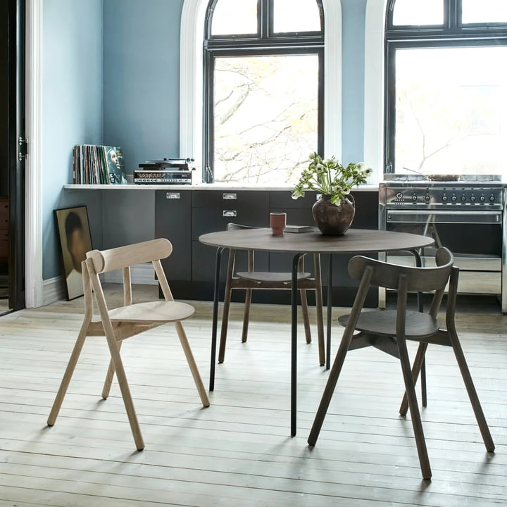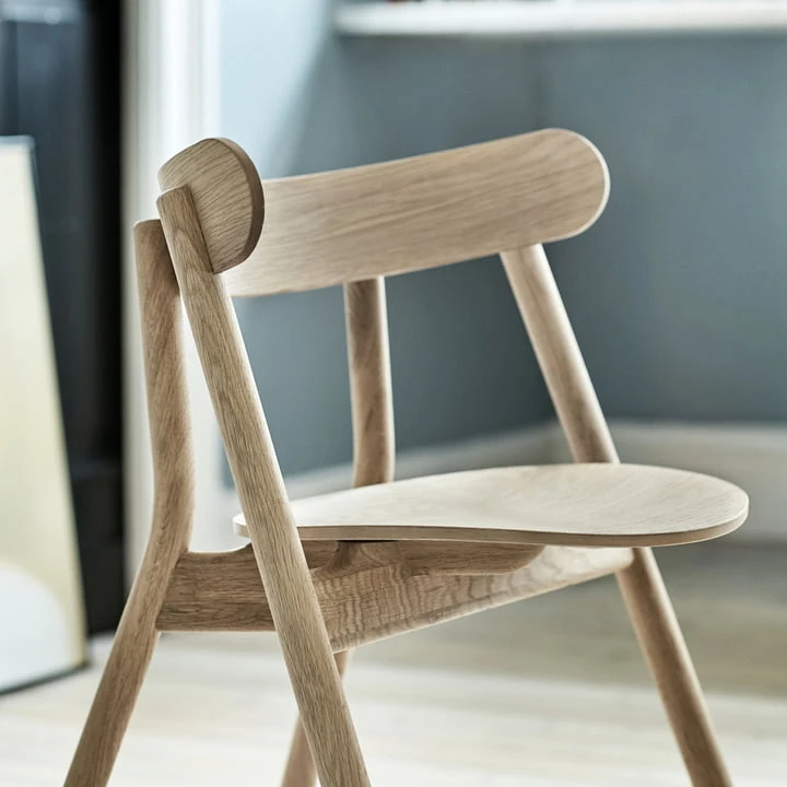 The round seat and the narrow, curved backrest provide the necessary comfort. Placed at the desk, in the hallway or at the dining table together with other models, the Oaki Chair sets stylish accents.