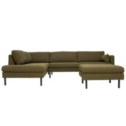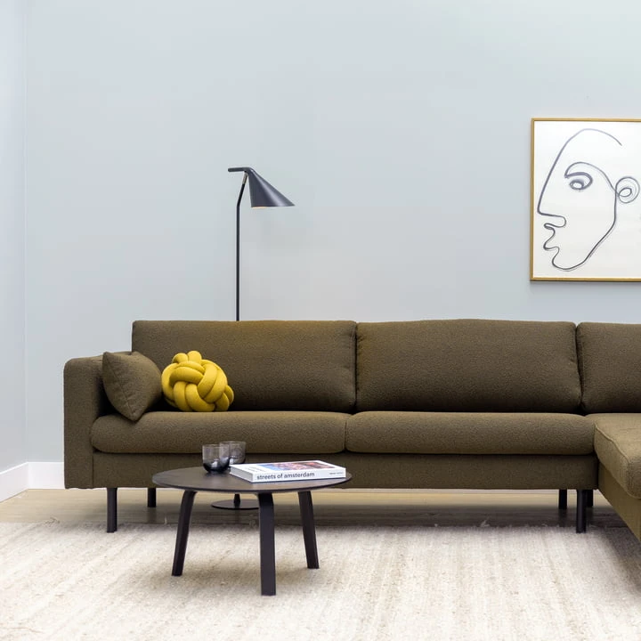 The Mette Corner sofa from Nuuck is available in a variety of colors. Likewise, there is a choice between the recamiere left or right. Clean with mild detergent only.