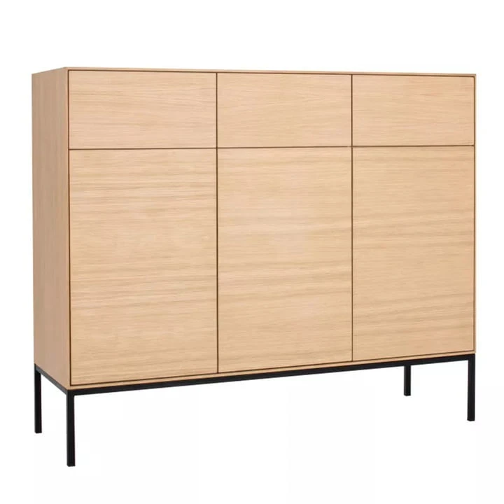 For the Nuury cabinet Nuuck combines natural coloured oak wood with black steel in a timeless design. The cabinet is wonderful for storage in the living room, hallway or bedroom. Behind three doors and in three drawers offers Nuury enough space for all kinds of small things that should not be seen directly at first glance.