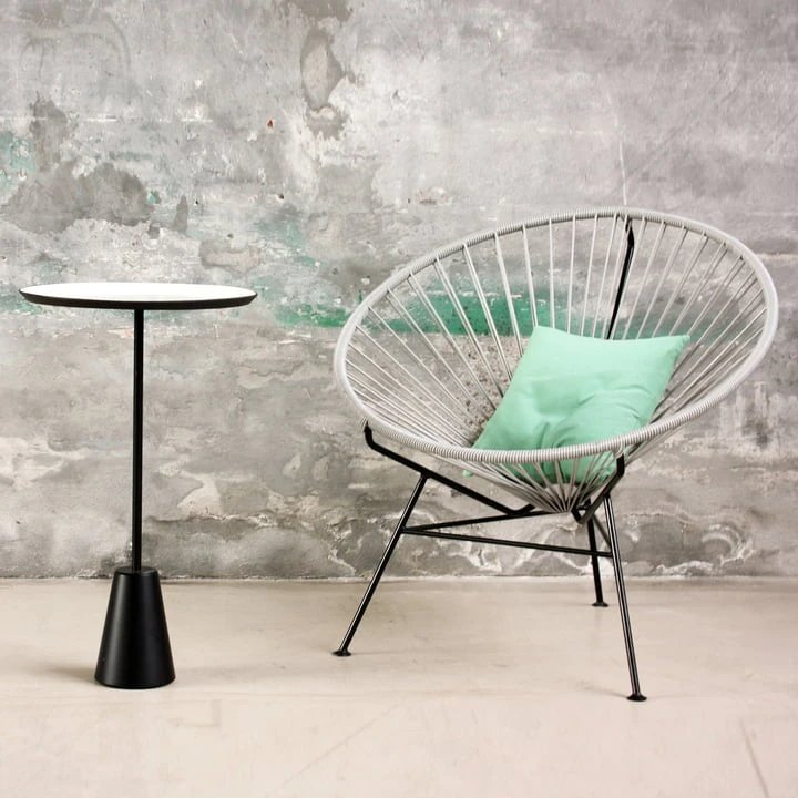 For example outside: The production of powder coated steel and PVC makes the chair by OK Design weather proof and UV-resistant. It always looks gorgeous inside and outside.