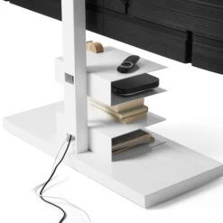 The TV stand Ptolomeo TV Smart from Opinion Ciatti is part of the Ptolomeo collection. Its sleek and clean lines fit in any environment. The TV stand consists of a column where cables can be stored and two steel shelves for electronic devices or other small items. The construction ends with a TV adapter and stands on a stable base. Particularly practical are the swivelling wheels of the Ptolomeo TV Smart , through which the stand can be moved at any time and adapted to the conditions of the room.