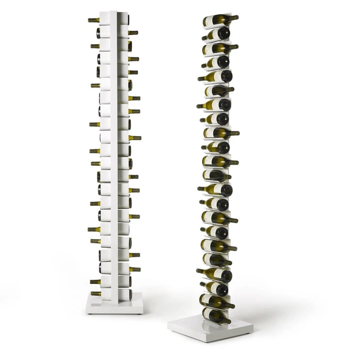 The Ptolomeo Vino Pedestal by Opinion Ciatti is a stylish bottle rack, modeled after the popular original Ptolomeo bookshelf. Designer Bruno Rainaldi conceived the wine rack in such a way that the bottles seem to float inside and their labels act as a decorative element.