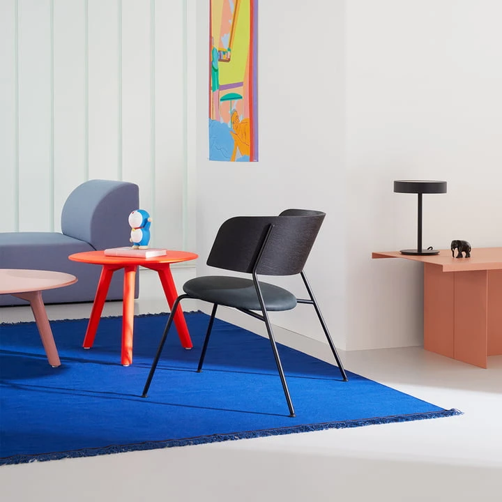The Wagner lounge chair from OUT Objekte unserer Tage wants to convey a feeling of home. The elegant chair fits harmoniously into almost any interior thanks to the simple geometric design and the different colour variations. As a seat in the hallway, for the conference room in the office or as a stylish dining room chair – the Wagner lounge chair can be used flexibly. The generous backrest also serves as a supporting armrest and its size conveys a feeling of security. The lightness of the lounge chair is shown by the filigree frame, which is made of powder-coated steel. This also makes the chair stackable, so that it can be stored space-saving.