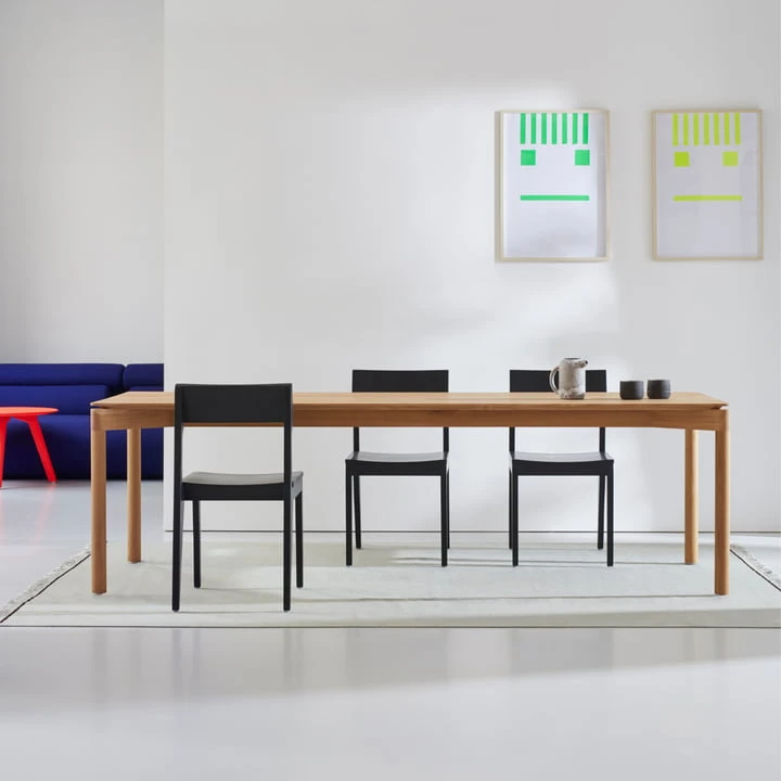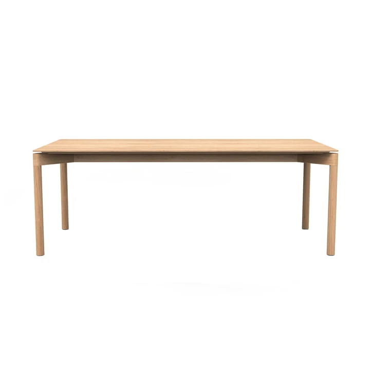The seemingly floating table top of the Wedekind gives the classical design language a reference to the present. Wedekind radiates a serene lightness and emphasizes the natural beauty of sustainable oak wood. On the other hand, powerful and characteristic edges and round legs form a balanced counterpart.