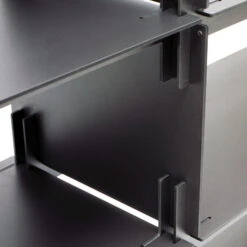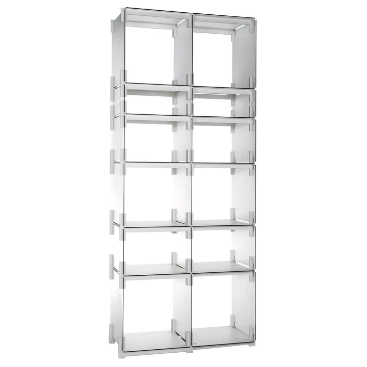 Plattenbau is a plug-in shelving system. The individual parts can be plugged together without any tools.