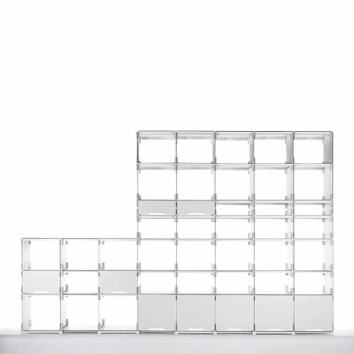 For example, a shelf can be broken down into six compartments and packed up taking the same amount of space as a briefcase, making it just as easy to transport or send. The Plattenbau shelving system is also available in the colours graphite grey, sand and yellow. Please note that all measurements on this page are based on the interior dimensions.