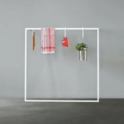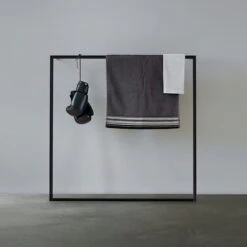 The MF Little Leano mute servant from Roomsafari is the little brother of the MF Leano lean-to coat rack. MF stands for Modular Frames: The practical aluminium frame is easily mounted in the hallway, bathroom, kitchen or living room and offers space for clothes, decoration, towels and more. Thanks to the minimalist design, the Silent Servant is perfectly suitable for any interior style.