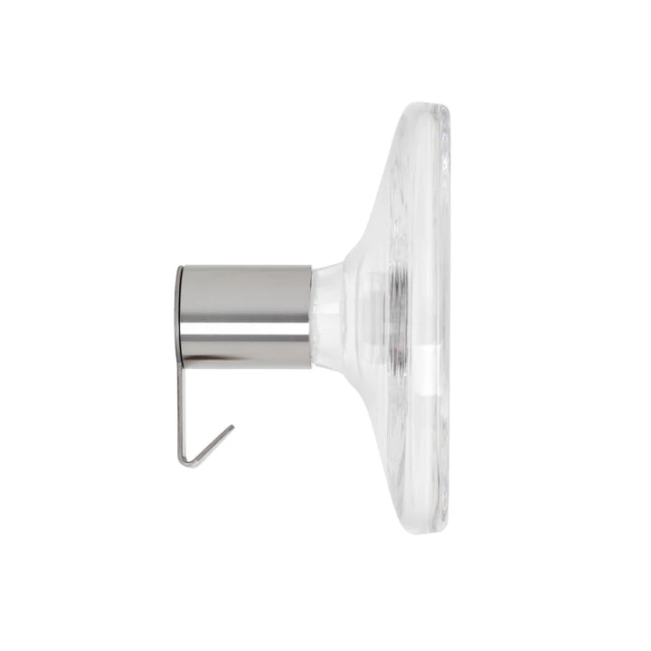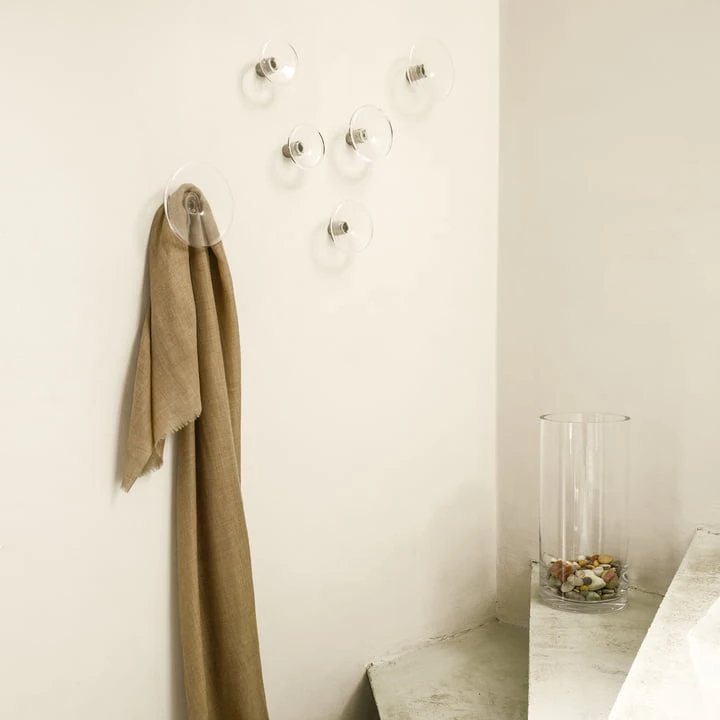 Both the transparent and the coloured hooks create a fascinating play of light and shadow on the wall behind them. The hooks are available in various sizes.