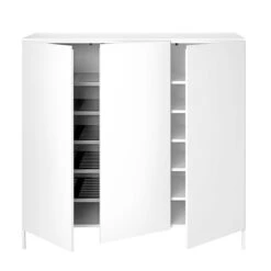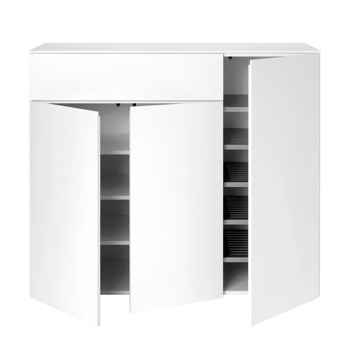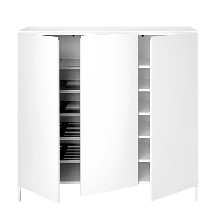 The cabinet, optionally with doors and/or drawers, offers enough space for clothes, accessories and shoes. Outdoor clothing can be discreetly stowed away by the front door, offering a storage solution for scarves, shoes and even umbrellas.