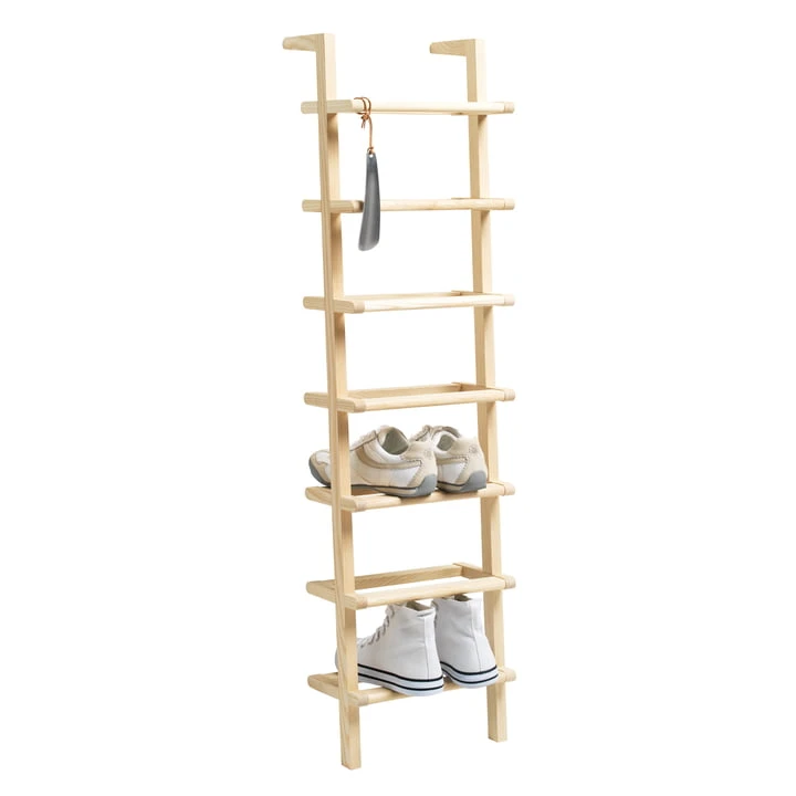 Christian Hoisl & Anneke Bieger had the idea of stacking shoes too. The side by side shoe rack Lady Long saves a lot of space this way. And the best thing is: Since the shelf can simply be leant against the wall, it doesn’t have to be mounted.