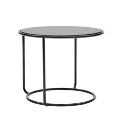 The occasional table with a height of 47 cm and a diameter of 58 cm is made of steel in black or white. The Pouf with a height of 37 cm and a diameter of 52 cm consists of a foam padding and is available with covers in different colours.