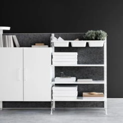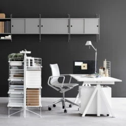 Flexibility is the name of the game in modern work environments. The Freestanding Shelf from the Works collection offers exactly the flexibility one is used to from String . At the same time, the shelf can be individually configured – depending on the choice of boards.