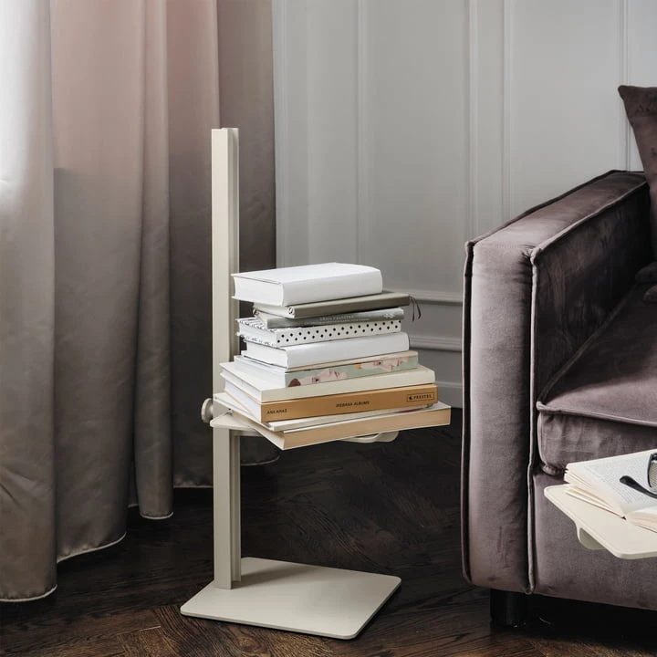 The height-adjustable table top is particularly practical. Books, reading glasses, hats, morning coffee and much more find a functional and decorative place on the shelf.