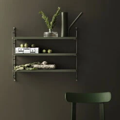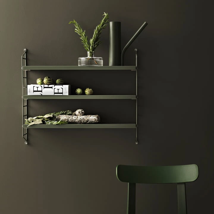 Combine. Vary. Add. Change the color. Change the wall. The little brother of the big String shelving system is the Pocket shelf. Ideally suited for paperbacks,CDs and DVDs, the compact wall shelf offers the same advantages as the String system.