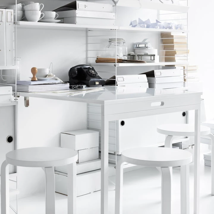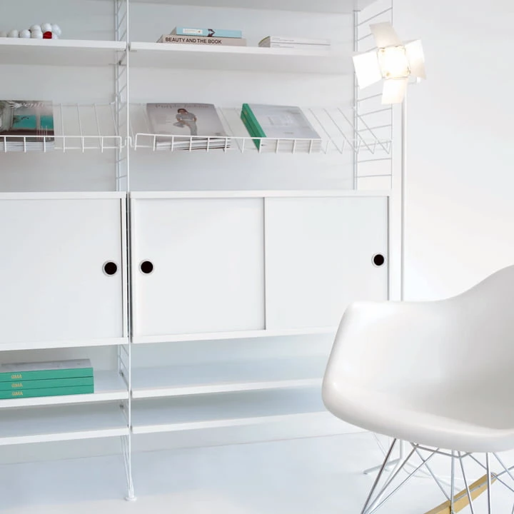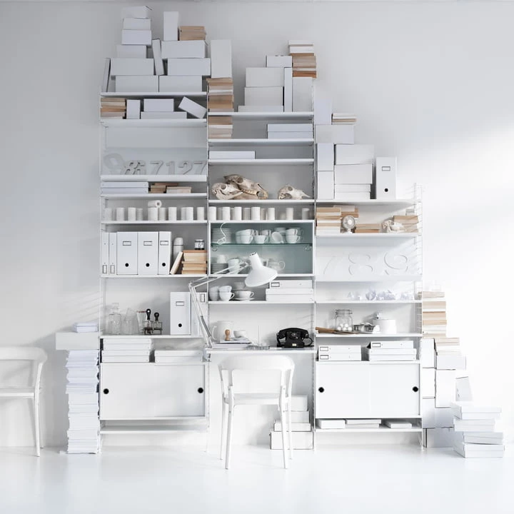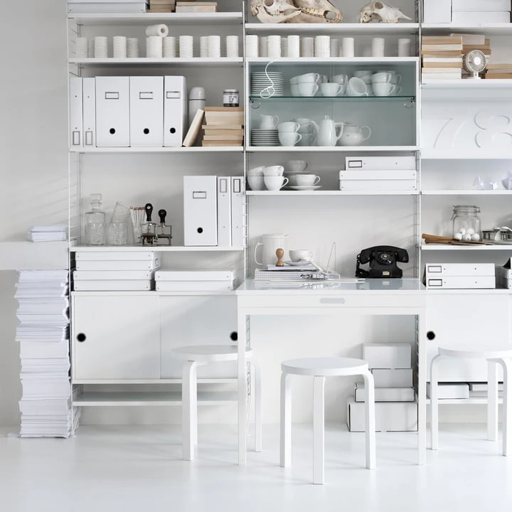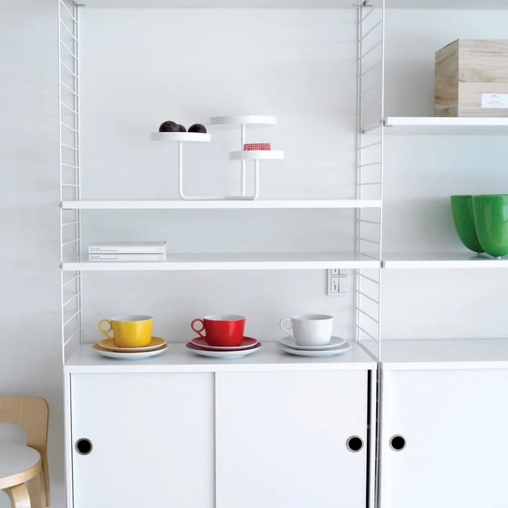 String can be varied and extended – always in a way that suits your needs. Everything will find its place, from books to a hi-fi system or even a computer. A design classic by Nisse Strinning.