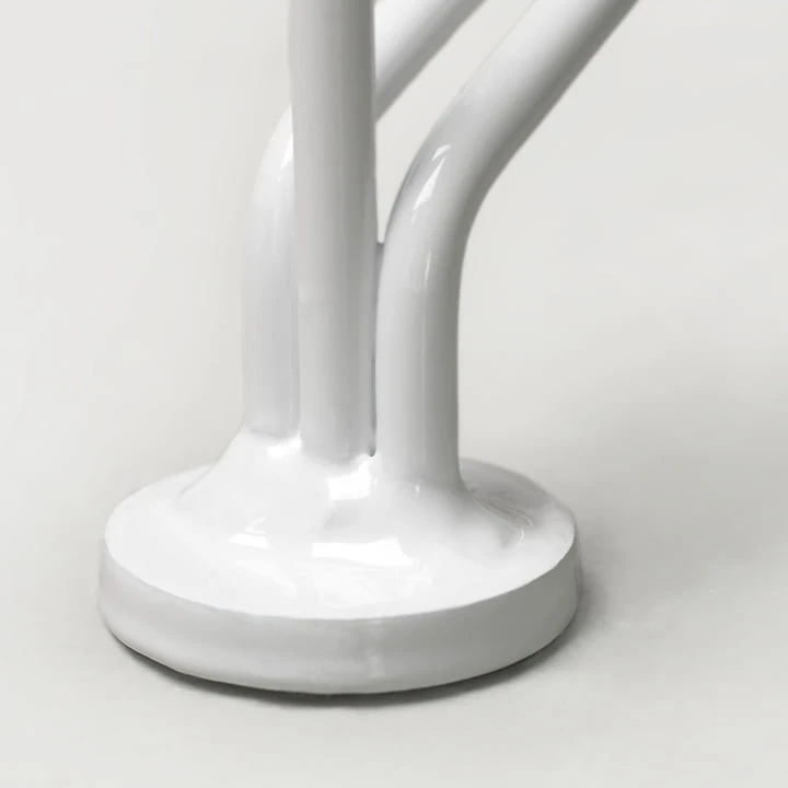 The ground elements are available in natural birch, walnut or oak wood, and in black or white lacquered MDF. The side elements made of steel are available in white, black or grey.