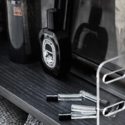 String Plex is so simple and unpretentious that the shelves give the impression of floating freely in the air. The effect is created because the characteristic side panels of the shelf, which climb up the walls like dainty “ladders”, have been replaced by transparent Plexiglas panels. Hence the name.