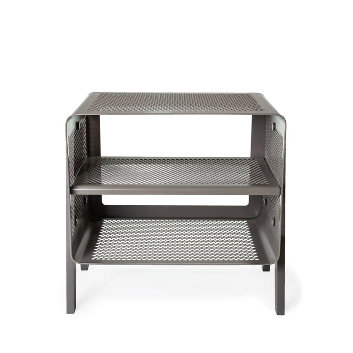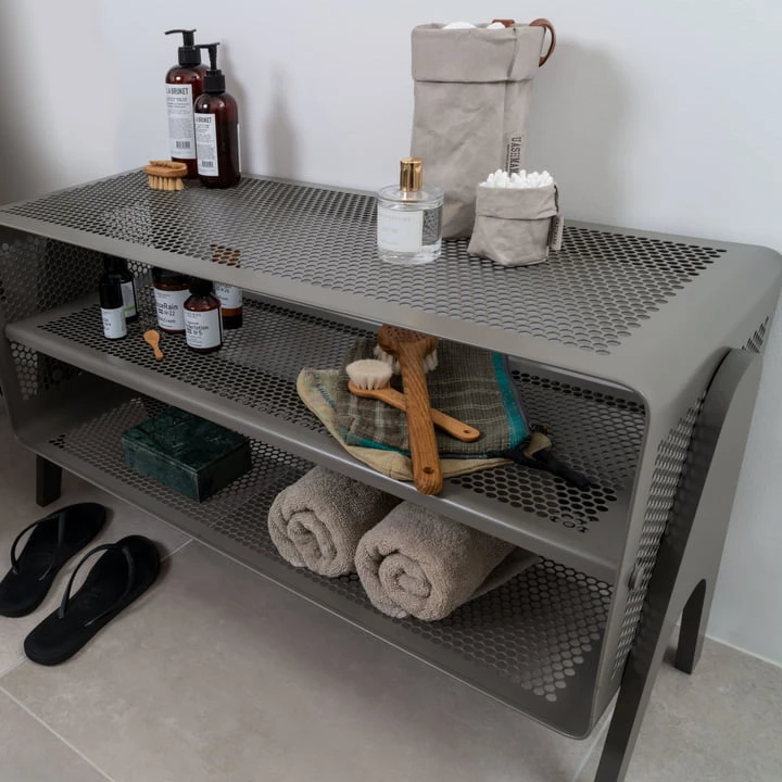 The tica copenhagen stand-up shoe shelf is a stylish way to store shoes and other everyday objects. Made of perforated metal with a fine perforated pattern, the shelf appears particularly light and transparent, so that it blends easily into any ambience.
