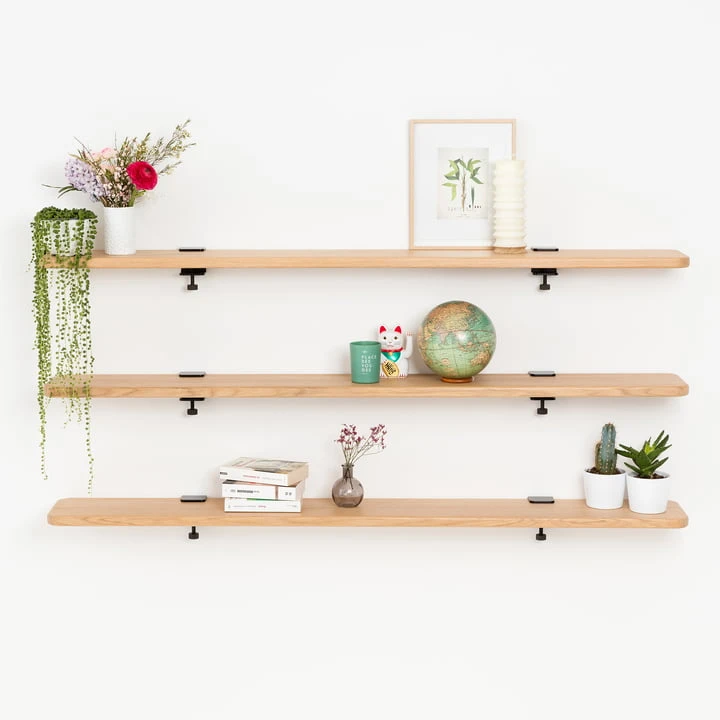 Wall shelf made of sustainable oak and steel