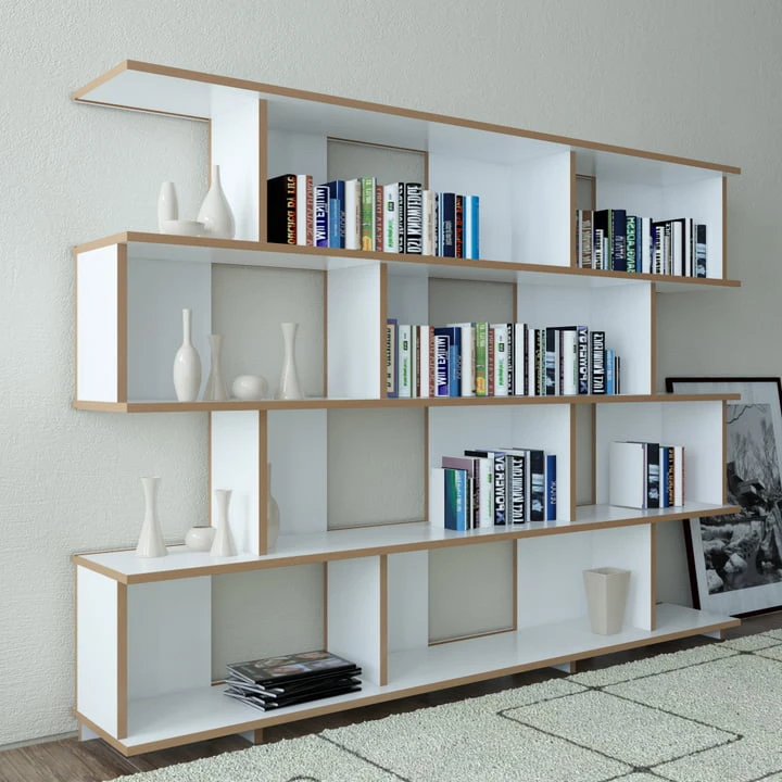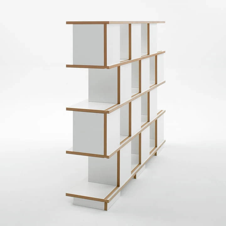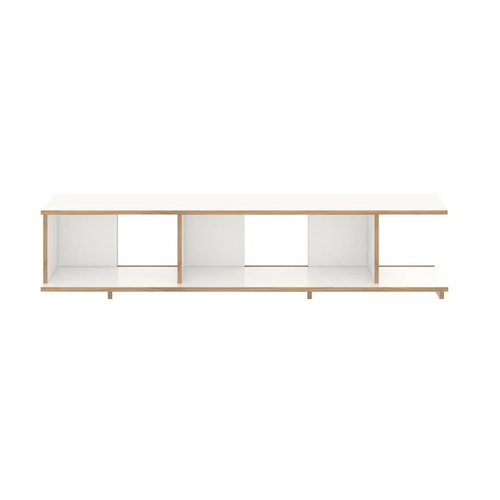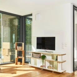 The stell shelving system from Tojo can be flexibly designed individually from a small freestanding sideboard to a high shelving wall. The white freestanding shelving system can be extended at any time. The individual modules in different lengths and heights can be easily combined with each other.
