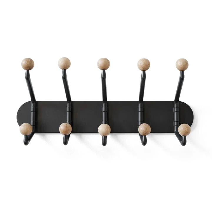 Wall coat rack made of powder-coated aluminum and solid wood.