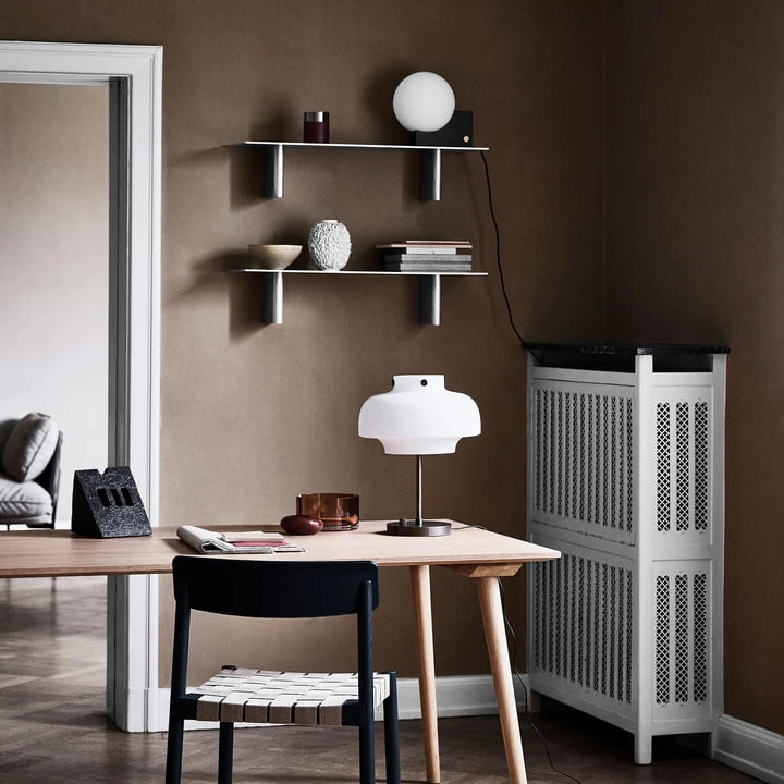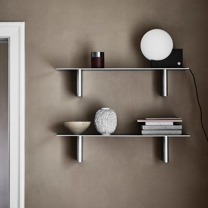 Column by John Astbury for & tradition is a small series consisting of two wall shelves that differ in proportions, surface structures and materials, but together create a harmonious impression. The British designer was inspired for the series by classic architectural columns.