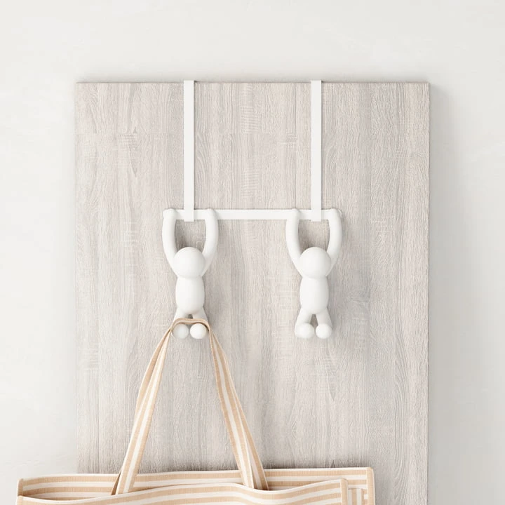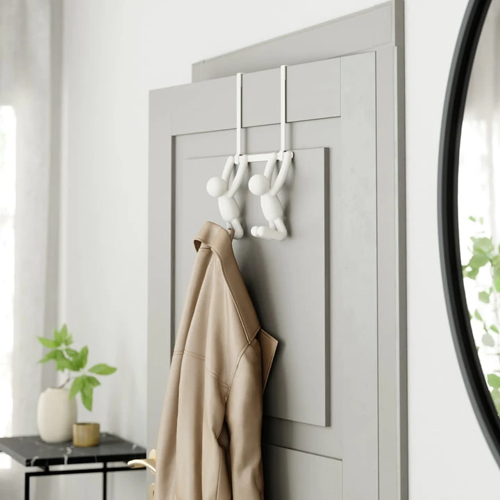 The Buddy Door coat rack from Umbra was designed by Alan Wisniewski and keeps jackets, scarves and accessories organized with a playful and modern design. The original coat rack can be mounted on the wall or simply placed above the door. Even when not in use, the little buddies that serve as hooks immediately catch the eye. In addition to the classic use in the entrance area, the hooks can also be used wonderfully in the bedroom, children’s room, bathroom or office. Versatile, jackets, scarves, bags, backpacks, umbrellas and towels find their place.