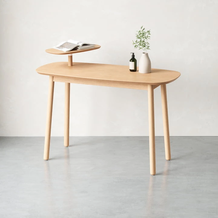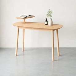 The Swivo Desk with Shelf from Umbra is a modern wooden desk with movable shelf. The versatile desk with real wood finish will delight you with its soft shapes, which will give your living spaces a soft, modern touch. The shelf can be flexibly swiveled and offers enough space for all kinds of small items such as plants or decorative elements like vases.
