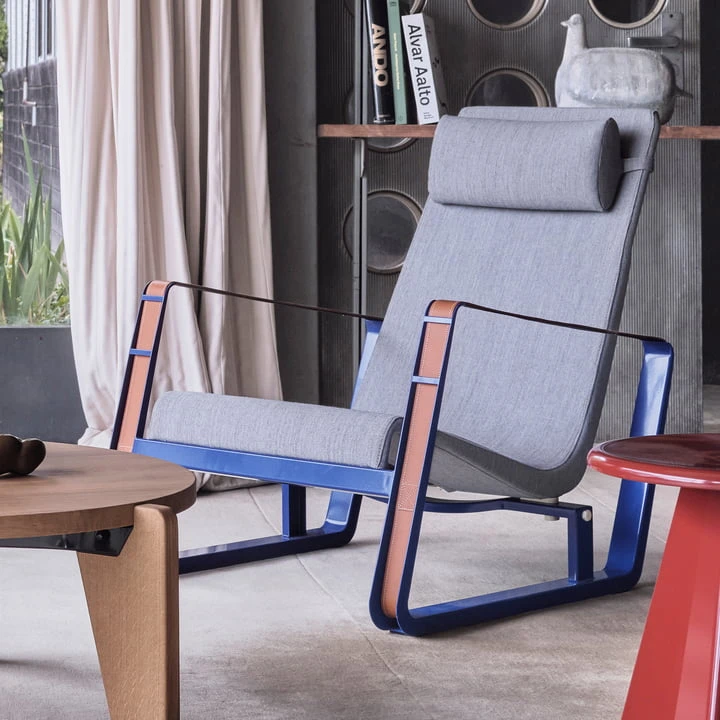 The Vitra Cité armchair is available with leather or fabric cover in different colors.