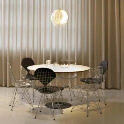 The dining table by Isamu Noguchivon for Vitra belongs to the design classics of the 20th century. Originally designed in 1954, the table still impresses with its elegant, sculptural form. The robust tabletop out of hard surface plywood is supported by interwoven bars, which act as the table’s legs. This creates a characteristic appearance and makes the table incredibly unique. Together with the bars, a sturdy cast iron ring that serves as the base produces a light and unobtrusive expression.