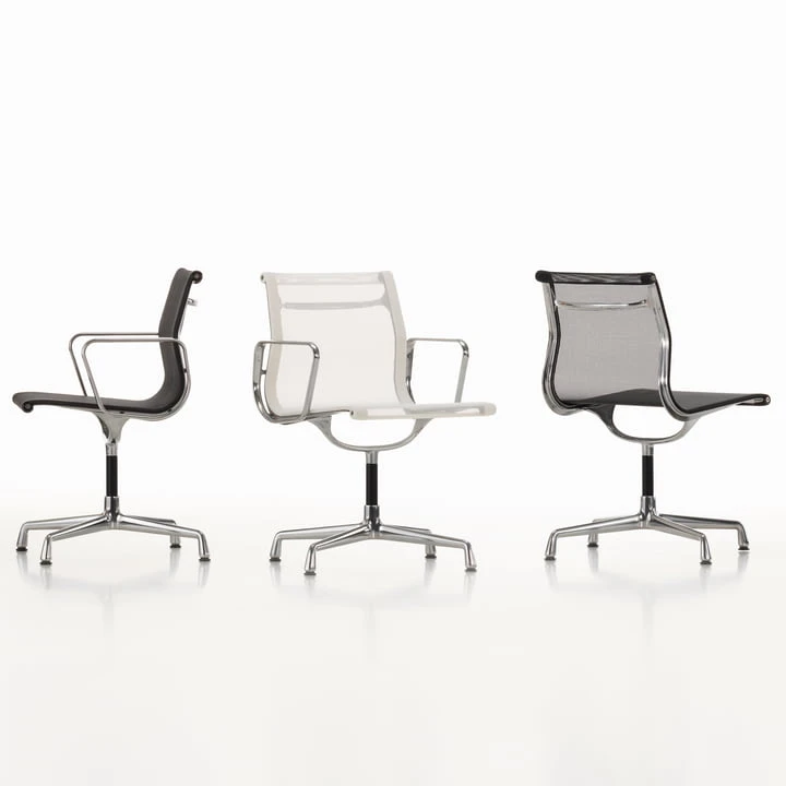 The Vitra EA 104 is also available in further colours, with other fabrics and as EA 101 without armrests and without swivel base as well as EA 103 with armrests, but without swivel base. Besides the EA 104 and the similar EA 101 and 103, there are also many further available models of the Vitra Aluminium Group.