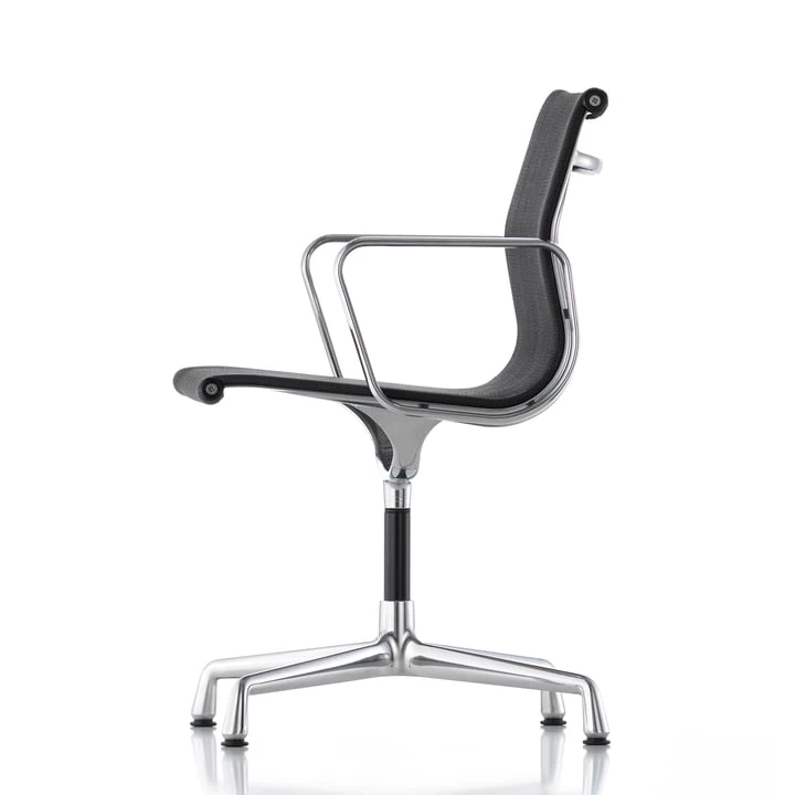 These qualities make the EA 104 office chair equally suitable for offices, public rooms and private areas. The Aluminium Chair EA 104 is ideally suitable to be used at a table: It is slimmer than the other Aluminium Chairs, the seating position is more upright and a little higher, the armrests are shorter. The EA 104 is therewith perfectly suitable for private dining rooms, restaurants or for meeting rooms in offices.