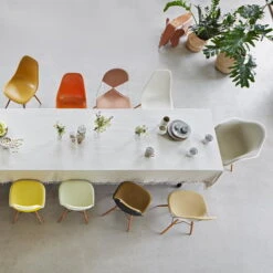 At the beginning of the 90s, however, the production of fibreglass shells was discontinued for ecological reasons. Instead, the seat shells were now made of polypropylene. Many design lovers, however, noticed right from the start that the charm of the chairs is mainly due to the visible glass fibres in the material. Thanks to improved manufacturing processes, Vitra now returns years later to the roots of the DWS and offers the chair again in polyester resin with fibreglass reinforcement in some of the original colours.