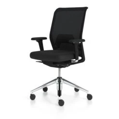 The office swivel chair family consists of many building blocks that can be used to meet a wide variety of requirements in terms of aesthetics, materials, intended use and price. Based on the different cover fabric models ( Mesh , Soft and Trim), over 8000 different ID chairs can be configured by combining 4 mechanisms, 3 armrests, 3 bases and 2 frame colors.