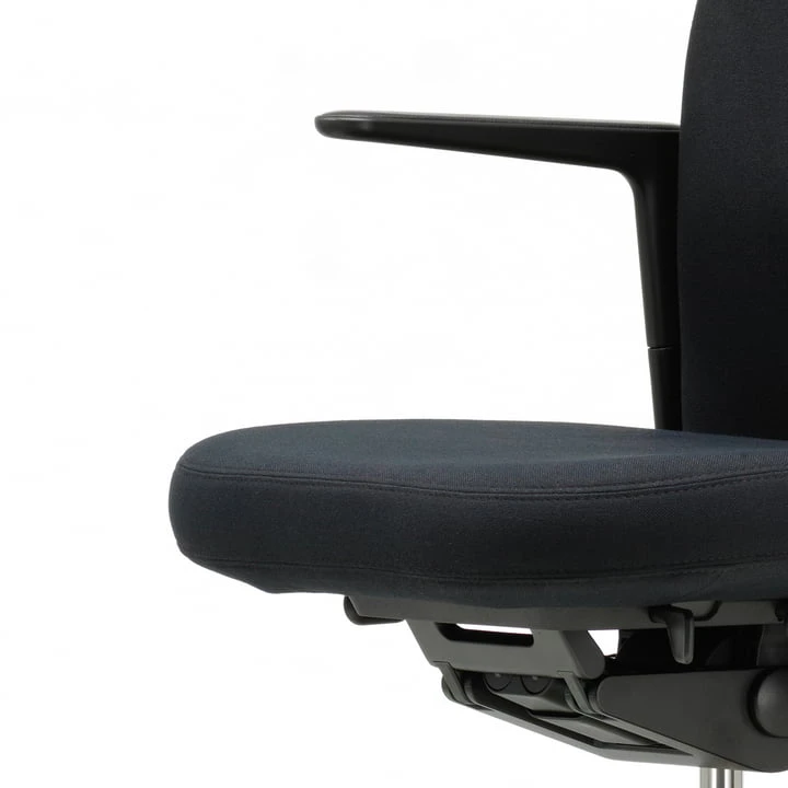 The height-adjustable backrest and armrests run in the same vertically aligned profile. The synchronous mechanism automatically reacts to the weight of the respective user and initially provides him with a maximum of individual comfort. All control elements are discreetly hidden and intuitive to operate.