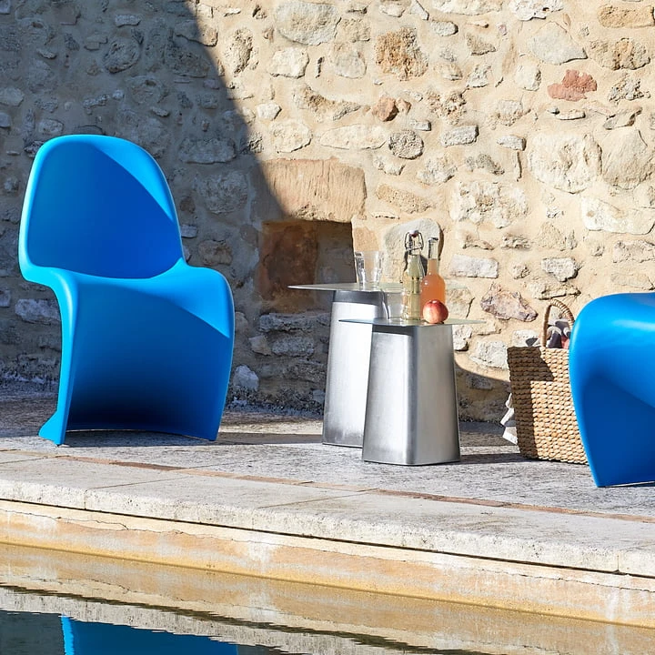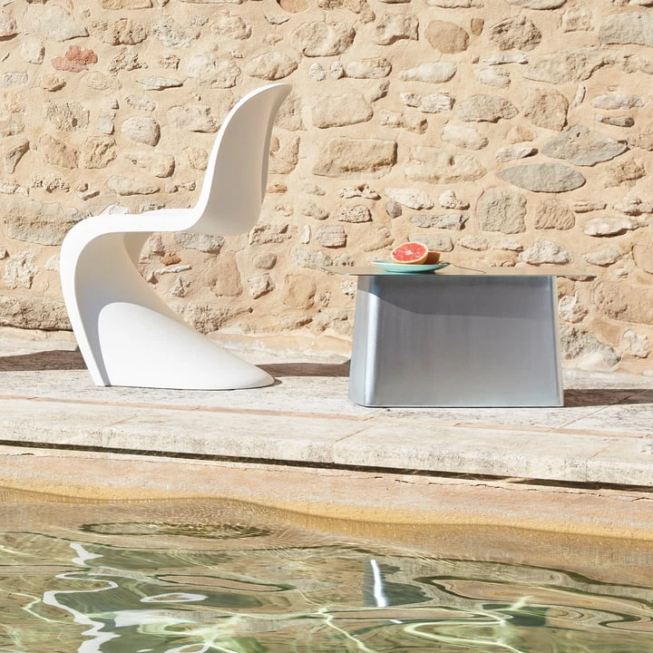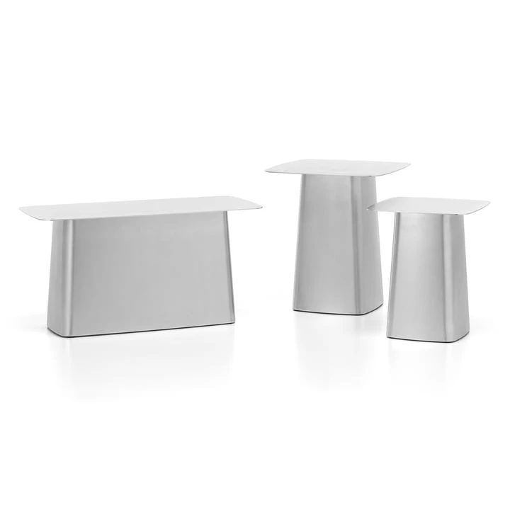 With their harmonious proportions and the appealing contrast between thin table leaves and pedestal-like voluminous bases, the Metal Side Tables by Ronan and Erwan Bouroullec cut a fine figure in many places and for many purposes. In the powder-coated version with fine texture, the Metal Side Tables are now also weatherproof side tables for the garden and balcony. Their new colors combine perfectly with the indoor and outdoor armchair Waver , whose base is available in the same colors.