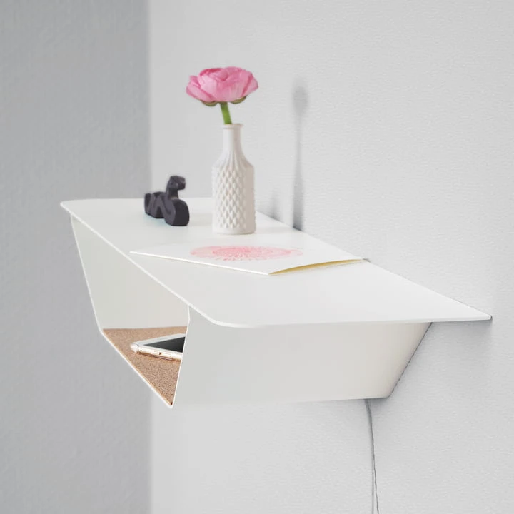 What makes it special? Thanks to a slot between the bottom shelf and the wall, the charging cables can be perfectly positioned. Smartphone are then quickly connected without having to worry about tangled cables.