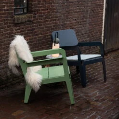 The Bended Lounger consists of aluminum plates that are bent at a 45 degree angle. This construction is extremely strong, yet flexible. Thanks to the flexibility of the construction, the chair can be placed on any surface and will not wobble. Therefore, it is perfect to sit in the garden and enjoy the weather with a good book and your favorite drink.