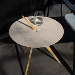 The Sundial side table from Weltevree combines a functional object with the unique aesthetics of a sundial. The universal sundial works anywhere in the world and connects the table with nature and the elements, especially the sun.