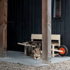 The combination of familiar elements makes the bench a special piece of outdoor furniture and is guaranteed to attract everyone’s attention. The Wheelbench is made of natural and untreated oak wood, which, if well cared for, will give you years of pleasure.
