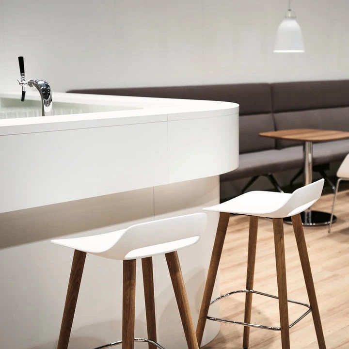 The Occo bar stool from Wilkhahn is a stylish and at the same time comfortable bar stool which, together with other Occo furniture not only in the office area, but also in the living area for comfortable style. Whether in the kitchen, or at the bar: The Occo bar stool cuts a fine figure everywhere. Available in two sizes and colours, made of oak, plastic and stainless steel.