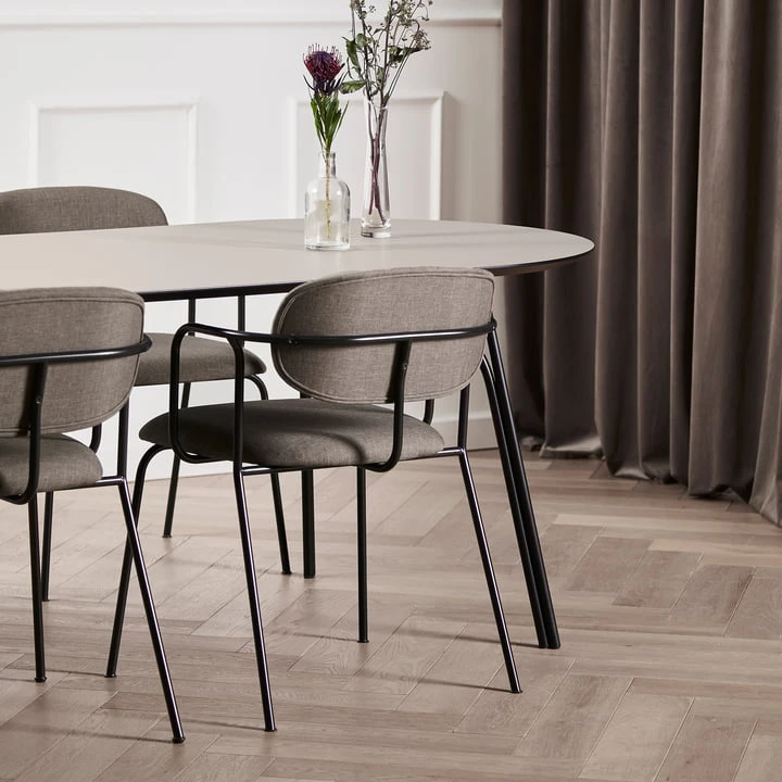 According to the same principle as one constructs a small building, also the Frame chair was created by designer Mario Tsai for Woud . He was inspired by the distinctive outlines of the scaffolding in Chinese cities. Horizontally and vertically, the lines of the outer frame frame the soft upholstery of the chair. The slim backrest and seat allow for comfortable sitting and give the design its softness. The Frame chair can be grouped around the dining table in the dining room as well as serve as additional seating in the hallway or living room.