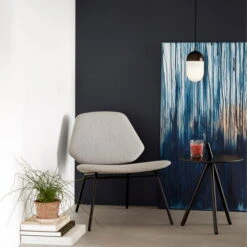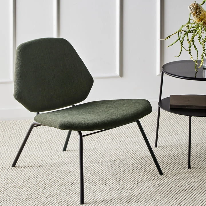 With the Lean lounge chair Woud gives a classic lounge chair a minimalist design. Reduced to the essentials, Woud ‘s interpretation in collaboration with the design studio NUR Design convinces with angular shapes on the seat and backrest. The high-quality upholstery ensures comfortable sitting and relaxation. It is held by a slender frame made of plywood and metal. Whether in the living room, hallway or bedroom – Lean provides a stylish oasis of calm everywhere.