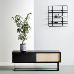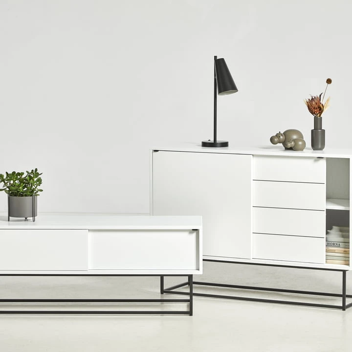 The Virka Lowboard from Woud is an elegant and timeless sideboard with sliding doors that convinces with clean lines and a simple expression.