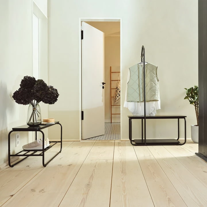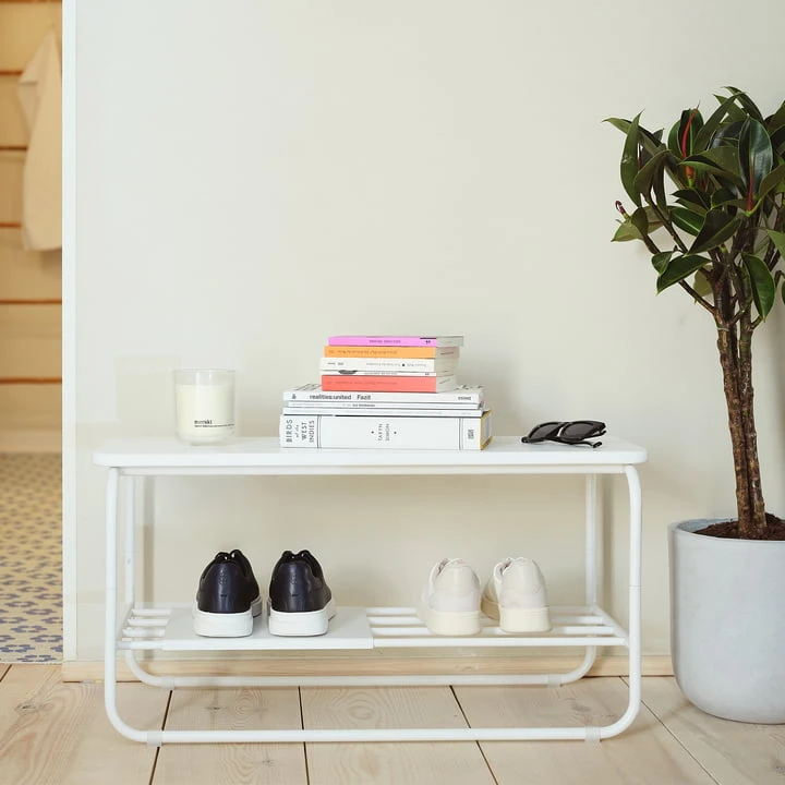 The R50 Shoe bench by young German designer Marvin Kasper for yunic is a wonderful composition of modern design and exceedingly high functionality. R50 Can be optimally used in narrow hallways or as a stylish addition to the bedroom. Below the bench, the available storage space can be used as a shelf for shoes, baskets, bags and all sorts of other accessories. Exclusively available at Connox!