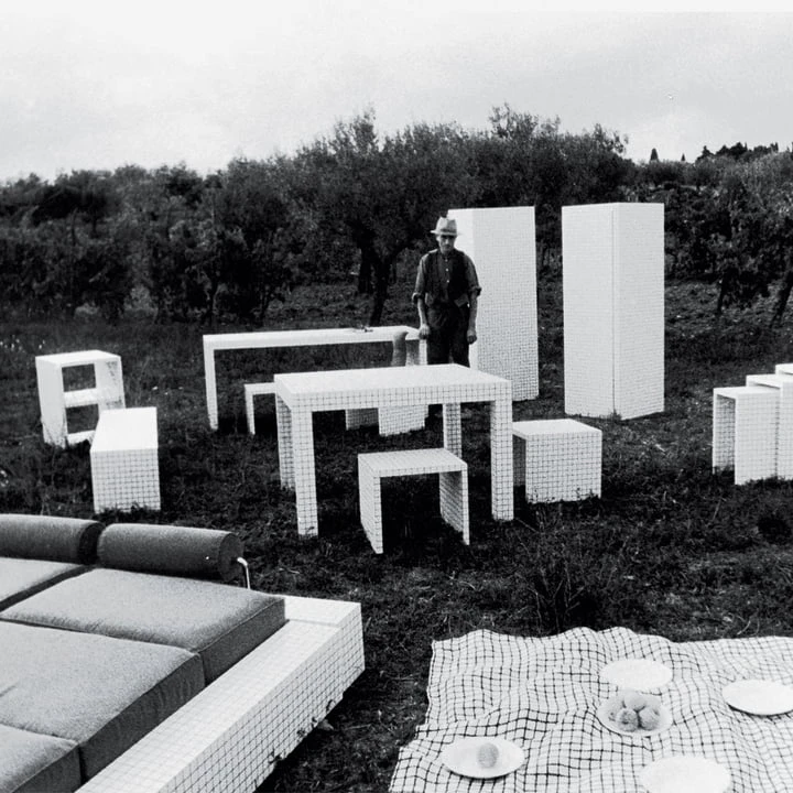 The design studio Superstudio was founded in Florence in 1966 and fast became one of the most important protagonists of the “Radical Design”. This radical design approach was part of the protest movement and wanted to completely change the conservative design environment instead of designing products in a specified frame. The pieces of furniture of the Quaderna collection of 1970 are likely the maybe most famous designs of Superstudio.